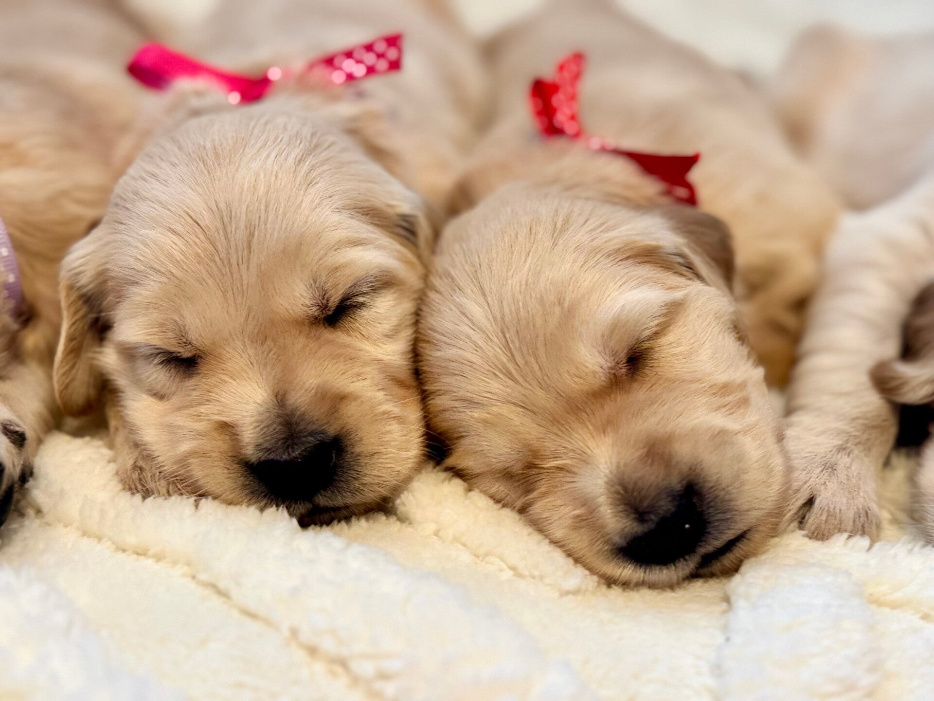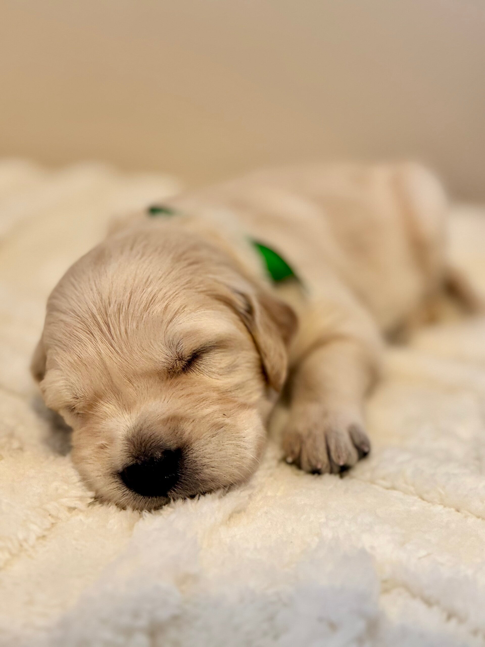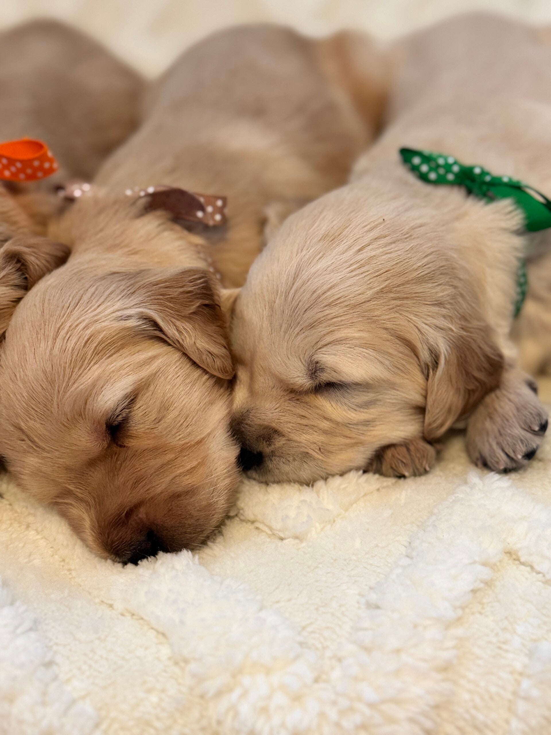From day 3 to 16, we implement Early Neurological Stimulation (ENS) training. This involves brief, gentle stressors like toe tickles, holding upside down, and holding upright, which significantly improve neurological development, stress response, and adaptability, laying a strong foundation for these beautiful goldens future. ENS is also linked to enhanced growth, immune, and cardiovascular systems.