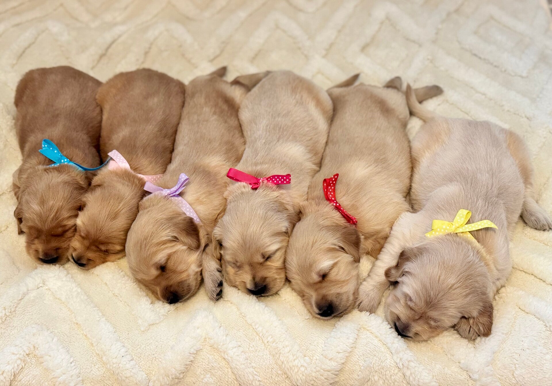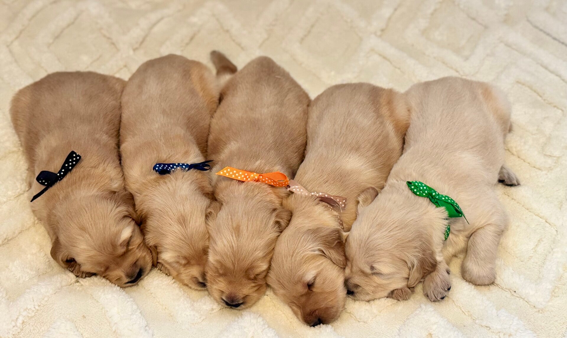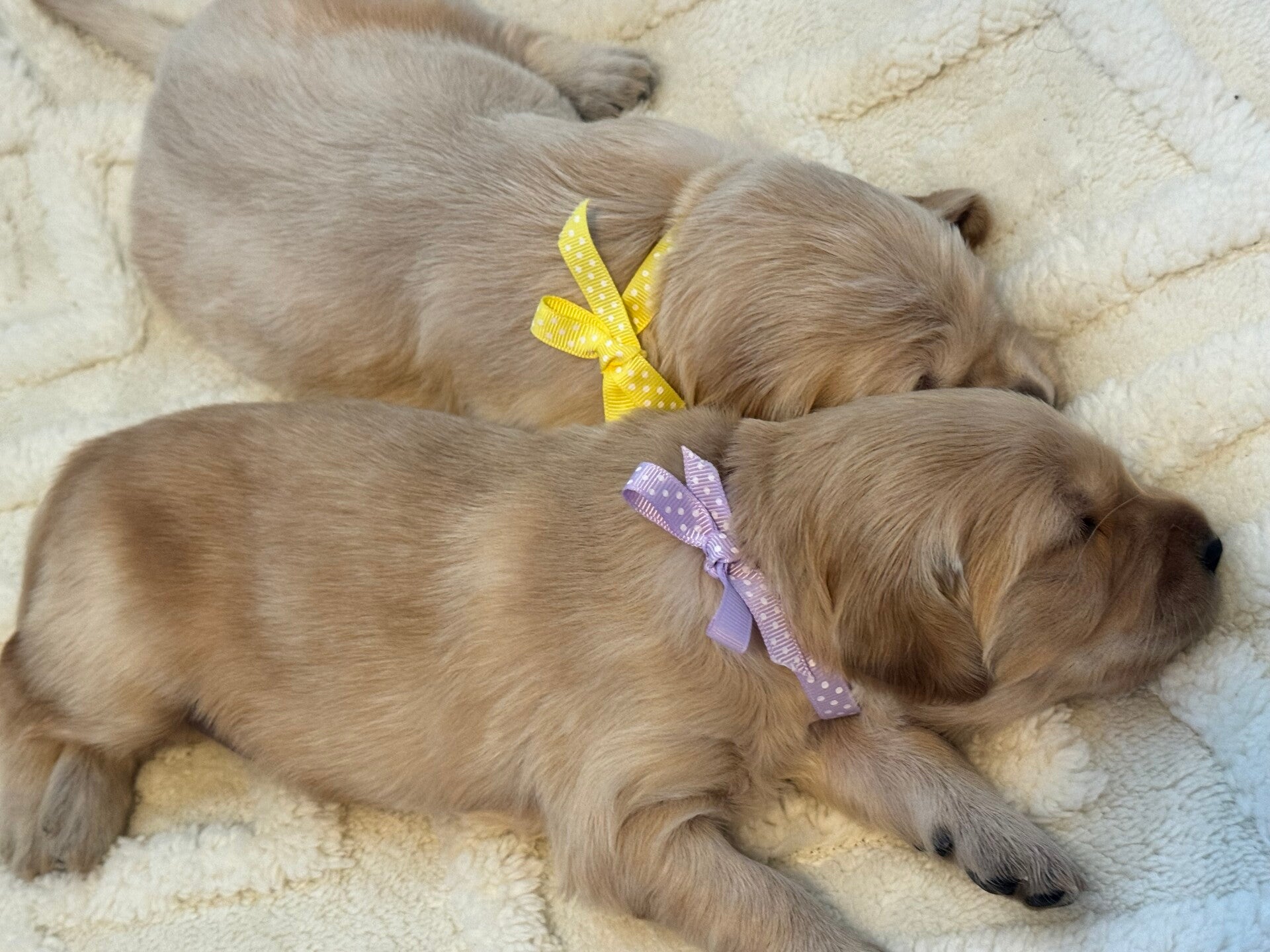From day 3 to 16, we implement Early Neurological Stimulation (ENS) training. This involves brief, gentle stressors like toe tickles, holding upside down, and holding upright, which significantly improve neurological development, stress response, and adaptability, laying a strong foundation for these beautiful goldens future. ENS is also linked to enhanced growth, immune, and cardiovascular systems.